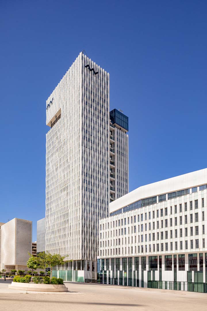 L’ensemble est une composition dynamique et élancée ; une composition équilibrée de volumes qui dialoguent. Ses façades lui confèrent une image de stabilité et de pérennité, et leurs modénatures présentent un caractère institutionnel et une modernité affirmée.